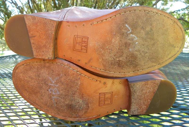 Condition: normal preowned vintage wear & aging: top of the foot creasing. Rubs, scuffs & some scratches/dings. Frye leather is in great shape. Nicely Seasoned. Wear and pitting on the bottom sole. No snags pulls in the canvas. Outer heels have some abrasions.