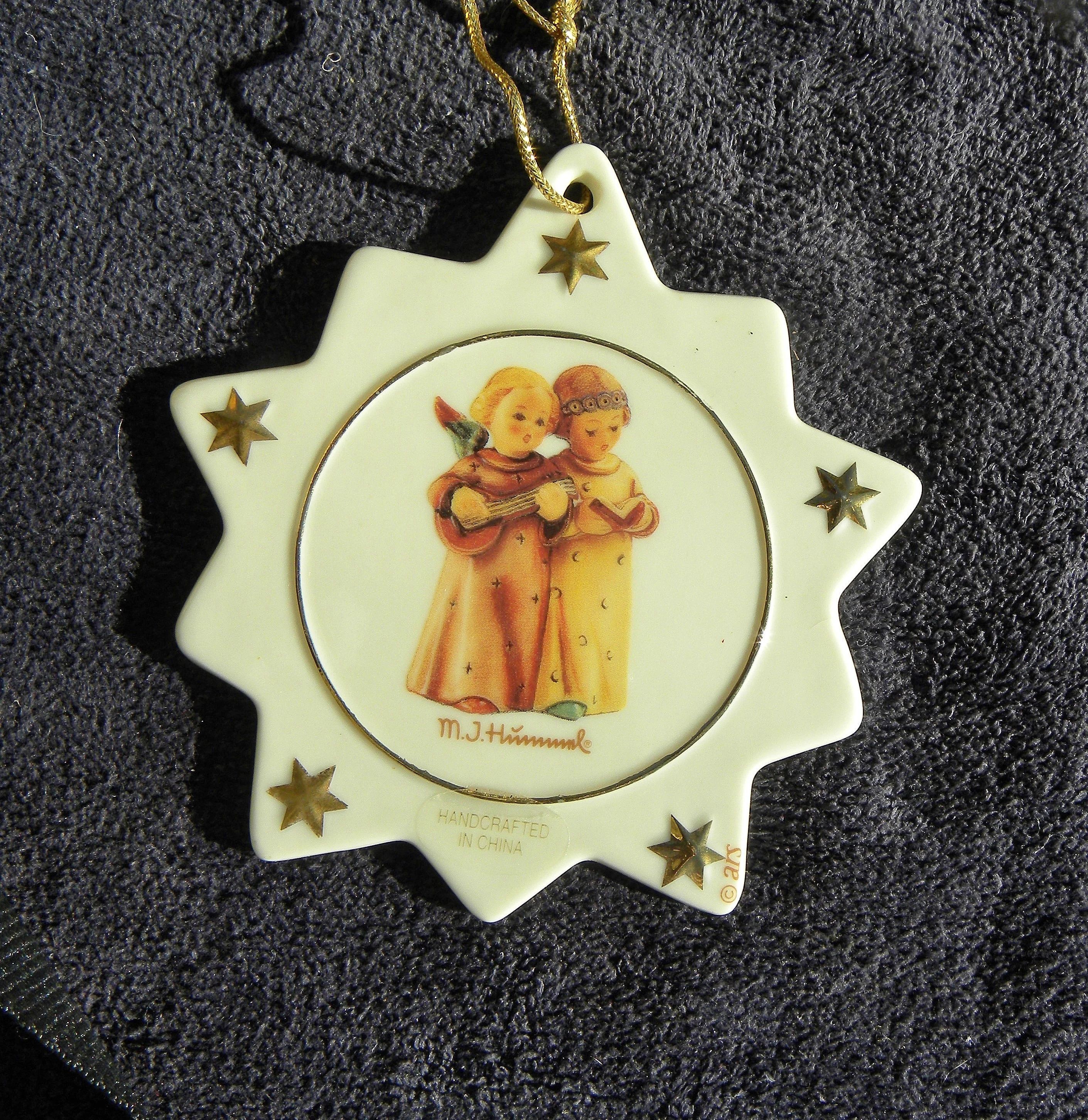 For Sale: Vintage Hummel Christmas Ornament, M. J. Hummel Flat Star 10 Points Ornament. Never displayed. Gold accents. Made in China.