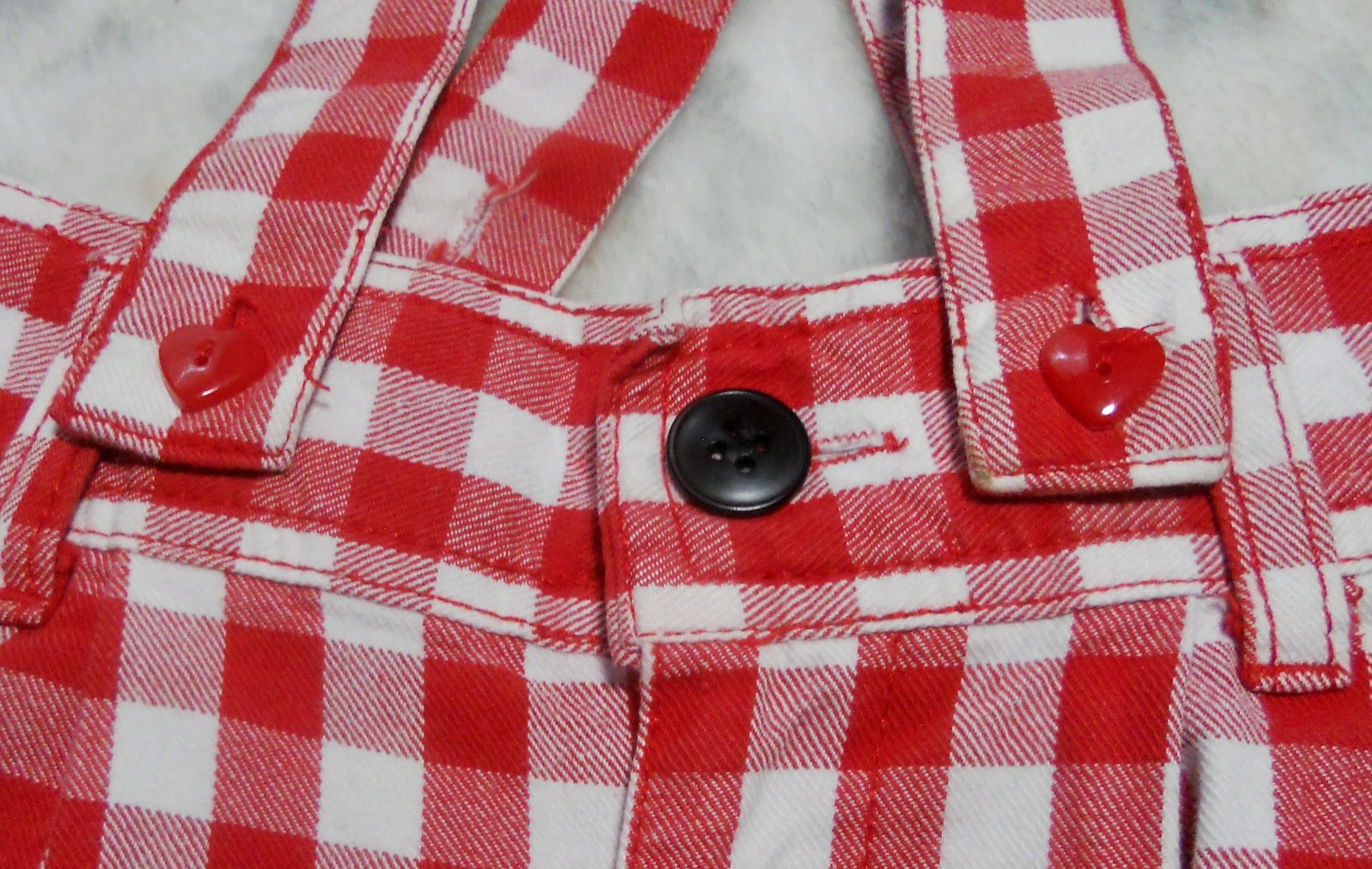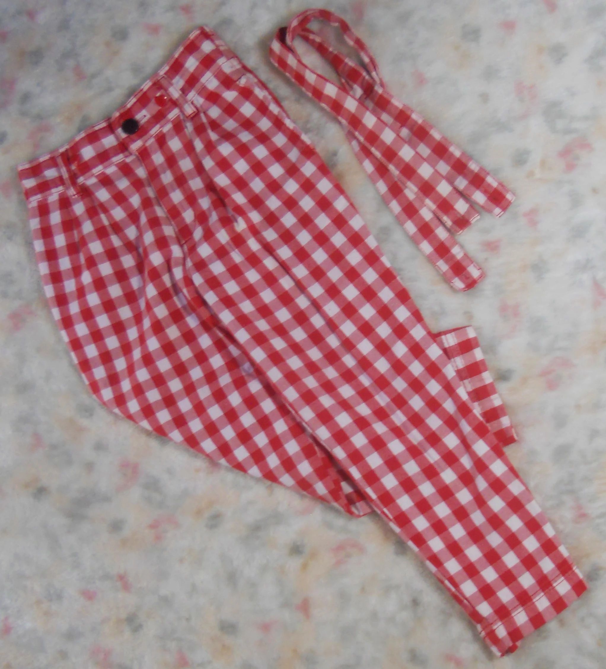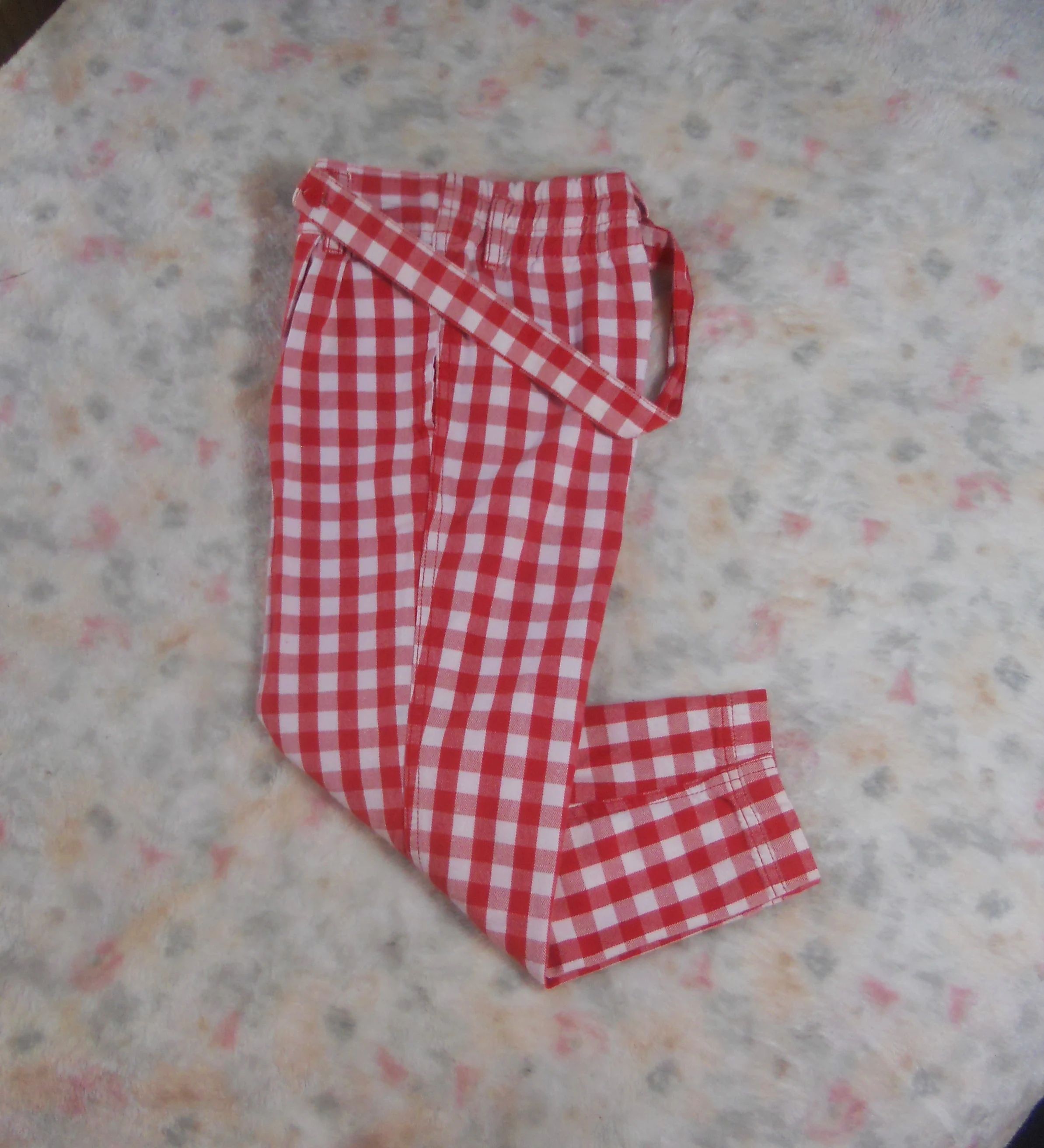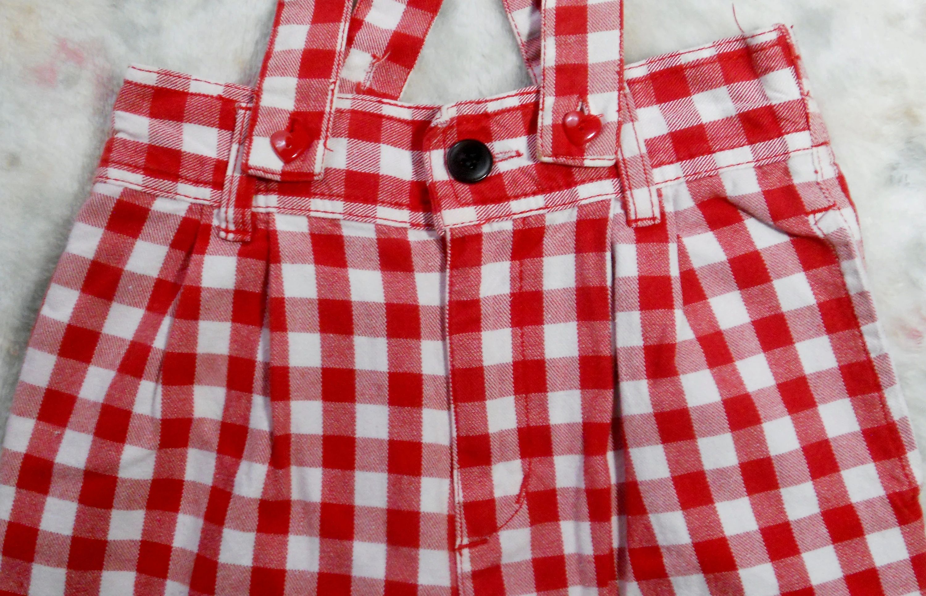 You are viewing a pair of 1980's VINTAGE Red & White Checked Pants by ESPRIT KIDS in Youth Girls Size 7 /Aged 5, but please refer to the measurements below. Vintage Esprit for kids is not easy to find. These slacks have a high waist, 2 small pleats on each side in the front , 4" front zipper, twin button above the zipper, vertical slash pockets on the hips, cut out pocket on the rear, rear elastic waist and 5 belt loops. The STRAPS are REMOVABLE; they have RED heart buttons on the front and clear buttons inside. The Fabric: 100% Cotton~Made in Hong Kong garment days, Condition: they are in good used condition... Please view all photos so you know exactly what you are buying! Measurements: Waist: 23-26" ~~Approx Hip due to pleats: 31.5"~~Rear Rise: 11.5"~~ Front Rise: 10.25"~~Inseam: 18.5" ~~around ankle bottom: 10.5". If you are interested in Vintage Kids Brand name & eclectic items, Favorite me. I will be slowly listing many neat items! FREE SHIPPING!! Thanks for looking!