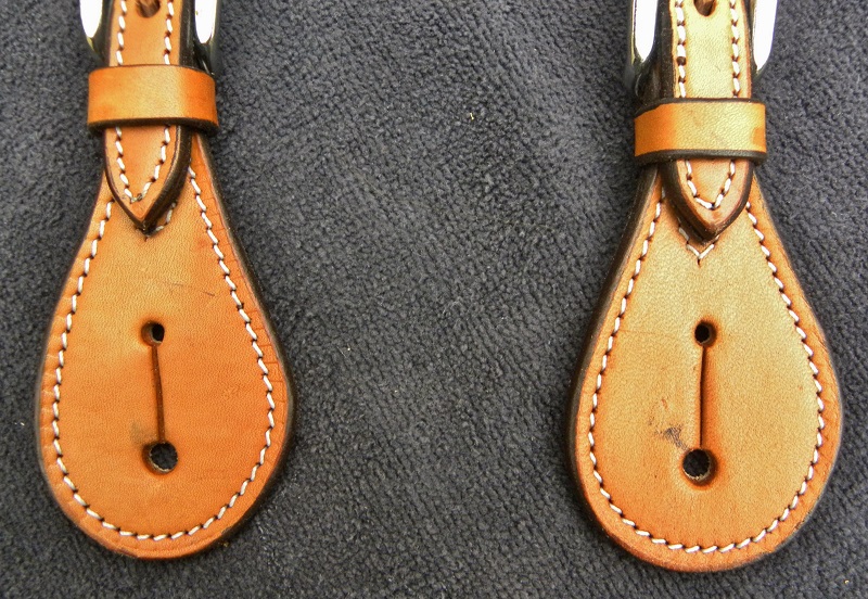 FOR SALE: Adult Saddle Tan  Tooled Leather Western Vaquero style spur straps with a Texas star, dots.and light top stitching. Three adjustment holes. Length of spur straps-- Bolt Hole to hole: longest :11" --shortest: 9.75". These have NOT been worn to work in...though I tried them on with spurs to see how they looked with boots. There are some marks onthe small end from Spur bolts.