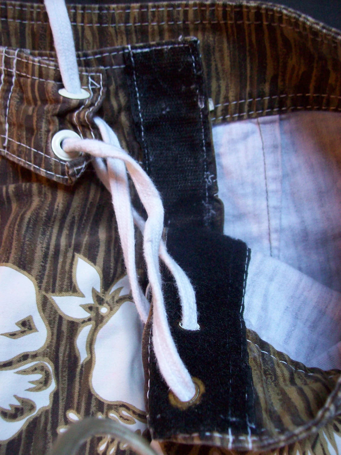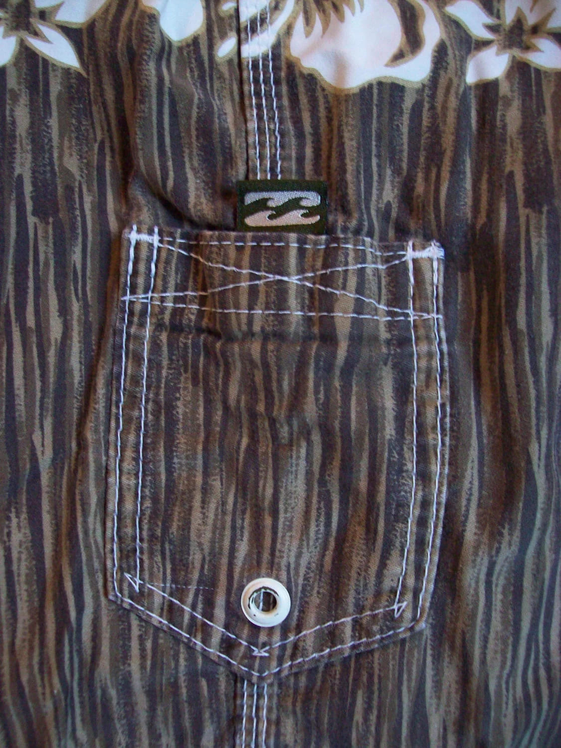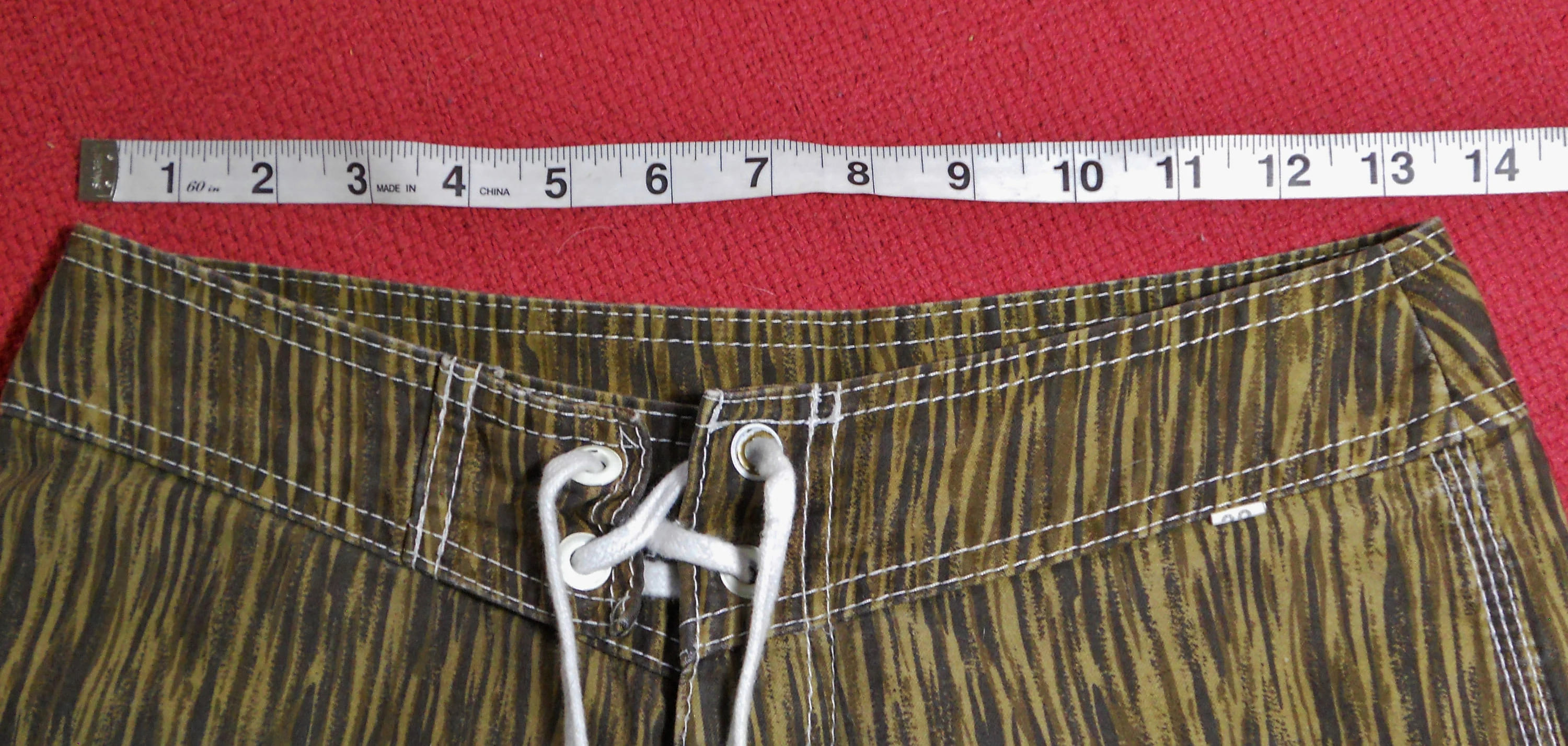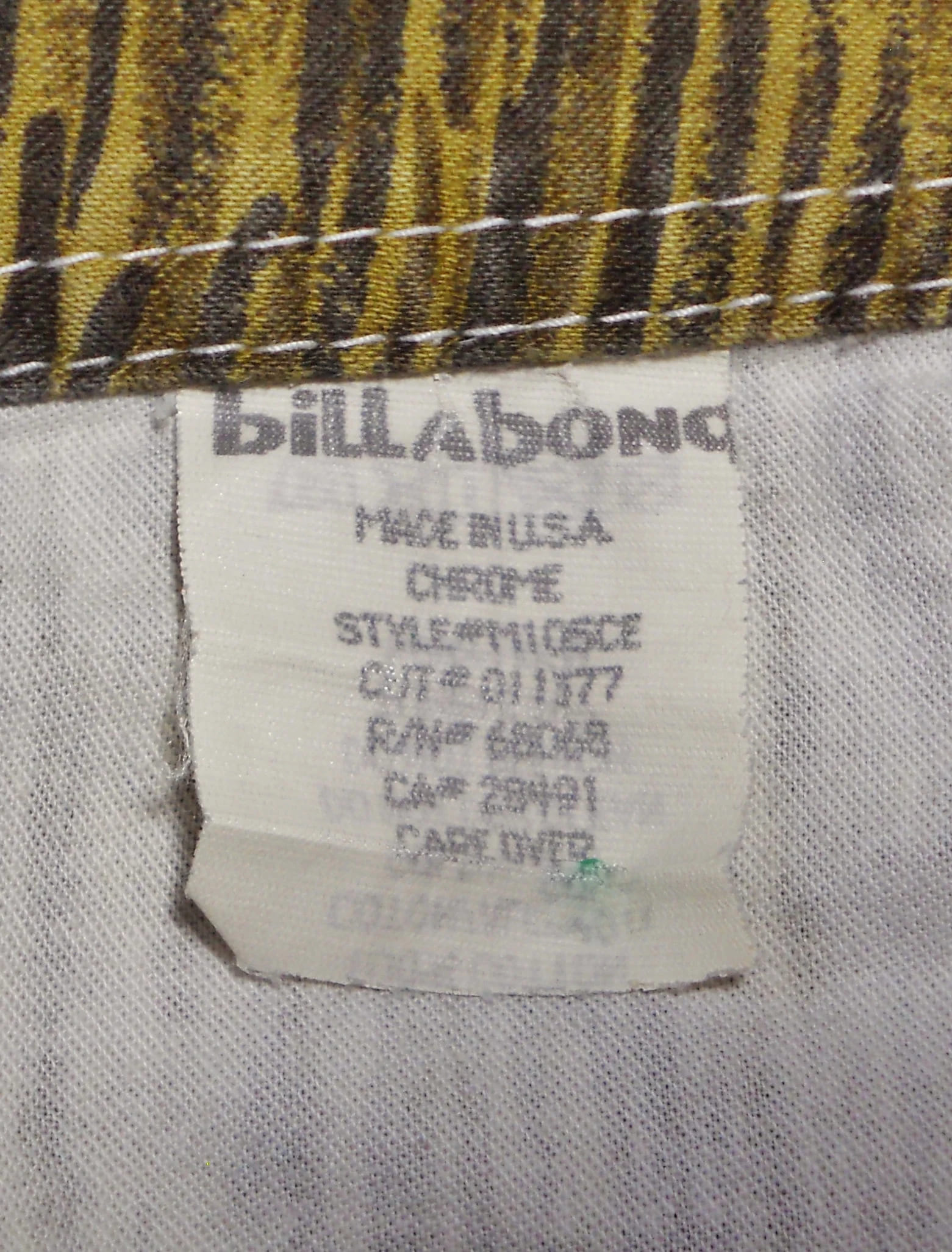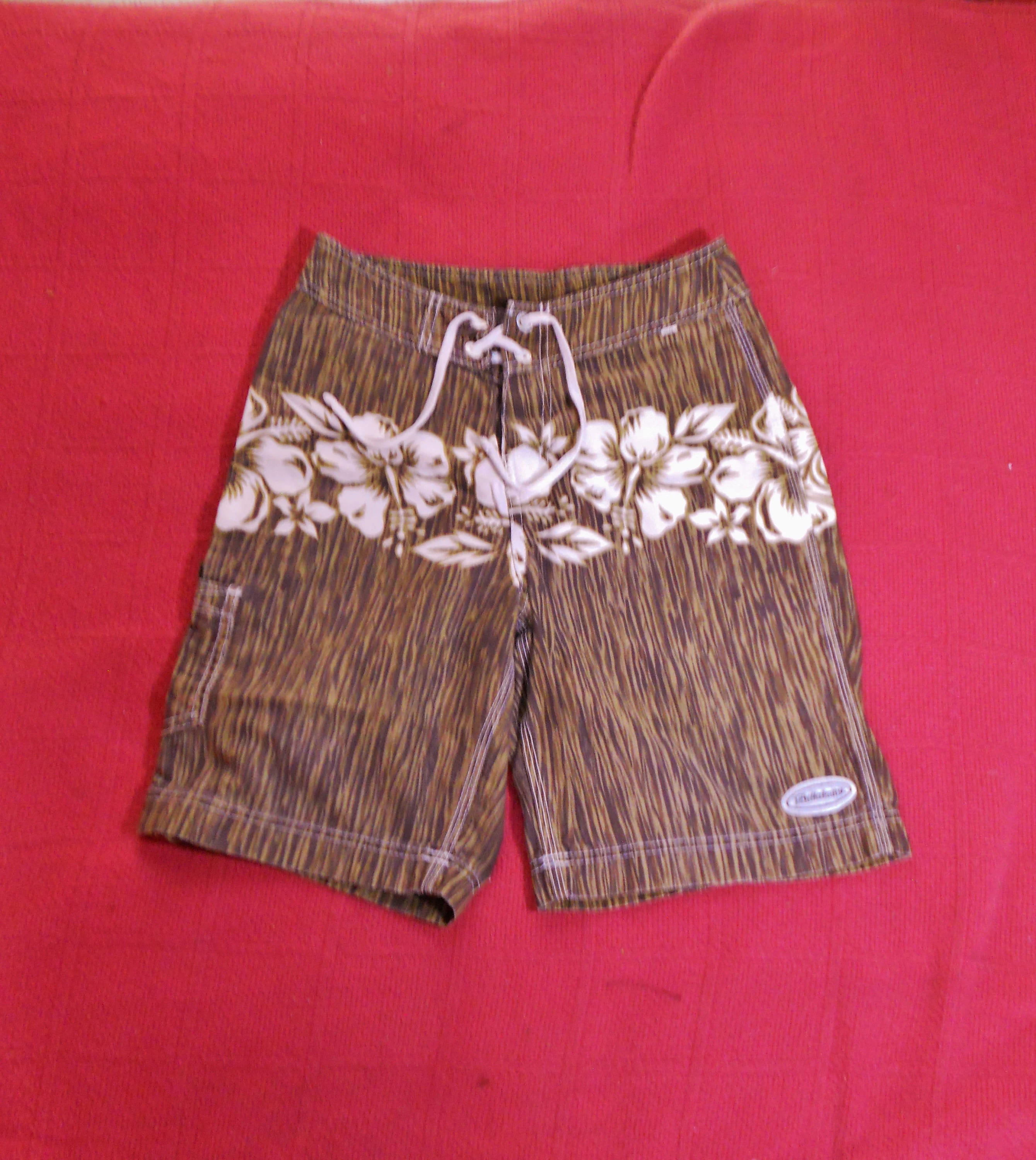 You are viewing a pair of cool preowned USA VINTAGE BILLABONG Woody Boardie Surf Shorts / Trunks in size 29 Waist. These subdued Hawaiian Print Boardies -- Woodies are 100% Cotton for laid back beach wear. Ultra Short 4.5" Velcro Fly including the waist band & white Drawcord. 19" Outseam~ 29" Waist. Pocket on the leg. Well made with triple top stitching on outer & inner Leg seams: Built to last. Long ago.. these cost in the $55 range, way back when: MADE IN THE USA. These are NOT new, but in very good preowned condition. Thanks for looking.